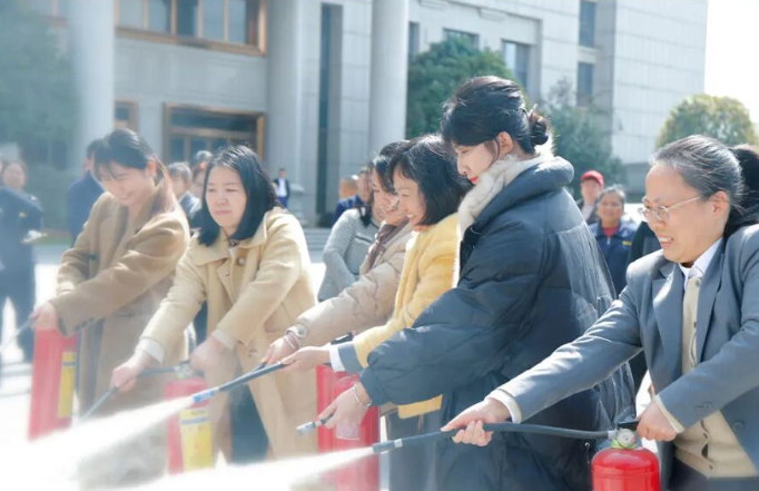 在这一环节,教官围绕企业生产和家庭生活安全,对干粉灭火器、消防栓等常用消防设施和灭火器材的使用与操作进行了详细讲解。“灭火器使用步骤‘提、拔、握、压’,灭火时要注意风向,控制灭火距离,对准火焰根部……”教官现场讲解了干粉灭火器的使用方法及注意事项,全体员工四人一组分批次进行实操,积极学习和使用各类消防器材,真正做到“三懂三会”,即懂火灾的危害性,懂火灾的扑救方法,懂预防火灾的措施,会报火警,会使用灭火器,会逃生自救。