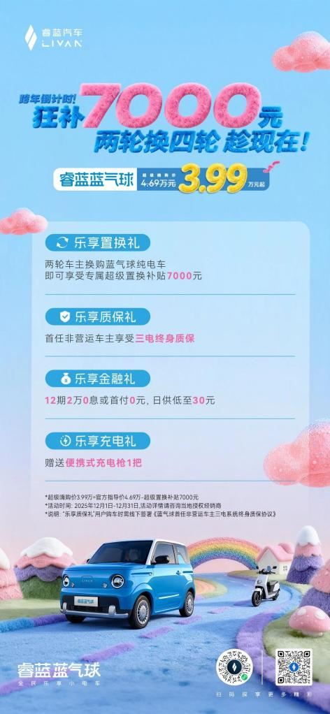 当一款车的价格不再令人焦虑,使用成本低到可以忽略,却能实实在在地拓宽你的生活边界,给予你更多温暖与自由时,它便超越了交通工具的范畴,成为了都市奋斗旅程中一个可靠的伙伴与一份温暖的犒赏。睿蓝蓝气球,正是这样一份送给都市年轻人的、触手可及的“生活升级提案”。